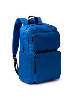 Mochila realizada en 600D RPET. Cuenta con un amplio compartimento principal, además de doble bolsillo frontal con cierre de cremallera para el almacenamiento de pequeños enseres y 2 bolsillos laterales para el transporte de botellas. Con asas y espalda acolchadas.