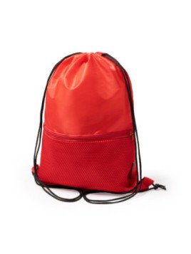 Mochila elaborada en RPET 210D de cuerdas ajustables, con bolsillo exterior en tejido acolchado con cierre de cremallera para el transporte de objetos más pequeños. Una opción práctica y segura para llevar tus objetos personales.