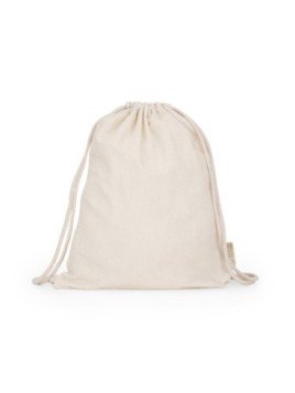 Mochila de cuerdas combinada 70% algodón reciclado y 30% poliéster reciclado de 140g/m² en color natural. Una opción sostenible y respetuosa con el medio ambiente para transportar tus enseres personales.
