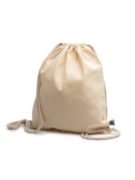 Mochila de cordones 100% algodón Fairtrade de 180 g/m² en color natural y cordones en el mismo color. Idónea mochila para uso diario.