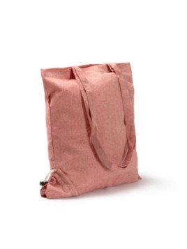 Bolsa plegable de algodón reciclado de 120 g/m² a color, con asas largas de 70 cm. Incorporado incluye un cordón que permite que la bolsa se pliegue desde la esquina inferior y conseguir mayor versatilidad. Esta bolsa es una opción práctica, sostenible y versátil para el transporte de tus objetos personales.
