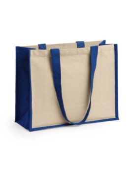 Bolsa de yute laminado con dos caras de algodón de 320 g/m², ideal para marcaje y asas largas. Su diseño combina color en detalles, laterales y asas a conjunto, y color natural en el cuerpo.