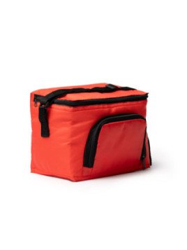 Nevera realizada en 210T RPET con interior isotérmico. Bolsillo frontal con cierre de cremallera. Asa de transporte ajustable.