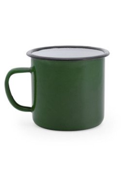Taza metálica con capacidad de 380ml. Diseño de acabado lacado e imperfecciones irregulares para lograr un mayor realismo retro. Cuenta con interior en blanco y asa a conjunto del cuerpo, además del borde en color negro.