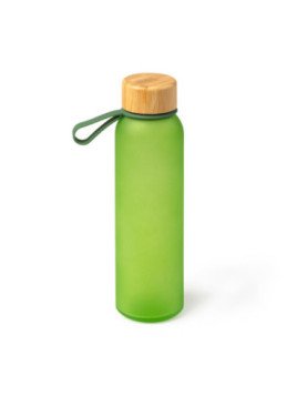 Bidón de cristal reciclado traslúcido. Cuenta con un elegante tapón de bambú a rosca y una práctica asa de transporte. Ideal para quienes buscan una opción ecológica y estilizada para mantenerse hidratados. Perfecto para usar en cualquier lugar, combinando sostenibilidad y diseño moderno en un solo producto. Capacidad de 500 ml.