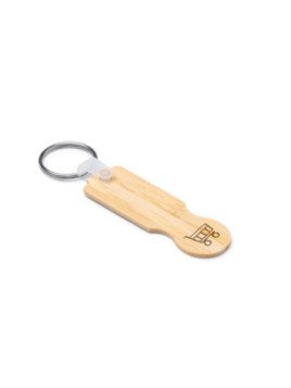 Llavero de bambú con moneda para el carro de la compra. Amplia zona de marcaje.