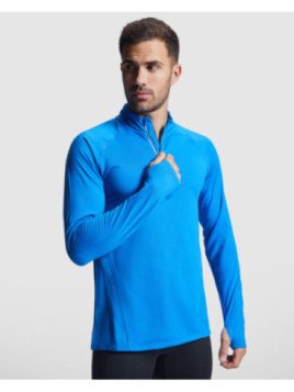 Sudadera técnica de manga larga ranglán para hombre con interior perchado. Cubrecosturas de refuerzo a contraste en el interior del cuello. Media cremallera invertida a tono con detalle reflectante. Puños con apertura para pulgar. El patronaje de la espalda es ligeramente más largo que el delantero. Detalles reflectantes en las espalda.
