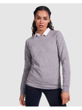 Sudadera entallada de manga larga estilo ranglán. Con cuello, puños y cintura, en canalé 2x1. Cuello redondo con cubrecosturas de refuerzo en el interior del cuello. Detalle frontal de costuras cruzadas, con remallado en tejido canalé 2x1.