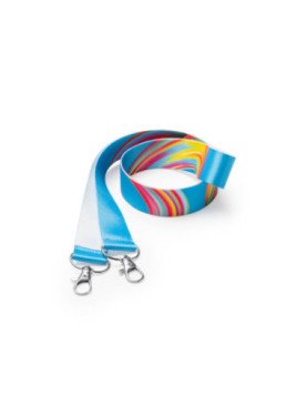 Lanyard de poliéster doble con mosquetón especial para sublimación. Este producto de confección se realiza bajo pedido.