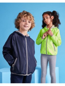 Cortavientos con capucha. Cremallera completa en contraste con protector de barbilla y tirador. Bolsillos delanteros con ribete reflectante. Bolsillo canguro a la espalda para guardar prenda, con cierre de velcro. Mangas y bajo de la prenda con ribete elástico en contraste. Interior de capucha con forro rejilla y cubrecosturas.