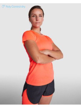 Camiseta técnica manga corta entallada transpirable. Roly Control Dry. Cuello redondo y cubrecosturas del mismo tejido al tono (Certificado UV).