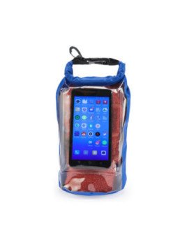 Bolsa impermeable de resistente ripstop. Práctica ventana con bolsillo para el móvil. Sistema de cierre estanco con clic y mosquetón para transporte. Capacidad total: 3L. Capacidad útil: 2,5L.