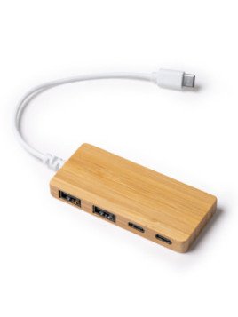 Puerto USB realizado en bambú. Dos salidas USB y dos salidas Tipo C. Conexión a dispositivo mediante cable USB integrado.