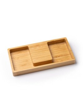Bandeja organizadora con cargador inalámbrico integrado en la superficie. Con potencia de carga de 10W, compatible con dispositivos provistos de esta tecnología de carga inalámbrica. Con distintos departamentos para objetos y soporte para situar el smartphone en posición vertical. Cable Tipo C para conexión incluido.