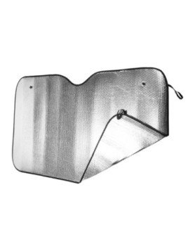 Parasol para coche de aluminio con burbuja doble cara y ribete. Incluye prácticas ventosas y gomas elásticas en color negro para su enrollado.