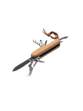 Multiherramienta con accesorios de acero inoxidable y empuñadura de corcho, versátil y práctica con múltiples funciones. Con 9 herramientas diferentes: navaja afilada de acero inoxidable para cortar con precisión, tijeras para trabajos de precisión, un destornillador para apretar o aflojar tornillos, un abrelatas para abrir latas, un sacacorchos para disfrutar de tus bebidas favoritas, y otras funciones adicionales. La empuñadura de corcho le da un aspecto único y agradable al tacto, además de ser una opción sostenible gracias a su composición.