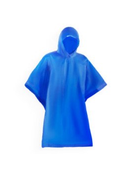 Poncho impermeable plegable, con capucha y apertura para los brazos, acabado termosellado y cierre lateral con corchetes. Amplia gama de colores. Fabricado en PVC.