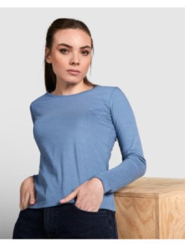 Camiseta de manga larga entallada en cintura. Cuello redondo con ribete del mismo tejido.