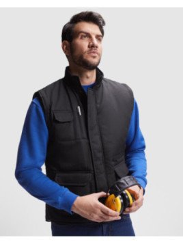 Chaleco laboral multibolsillos acolchado con faldón trasero.