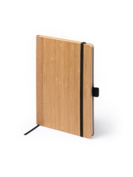 Libreta A5 con tapas de bambú y corcho. Soporte para bolígrafo. Marcapáginas y banda elástica. 80 hojas rayadas.