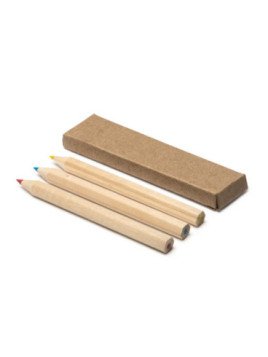 Set promocional compuesto por 3 lápices de colores de madera presentado en caja de cartón reciclado.