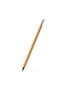 Lápiz infinito con cuerpo de bambú. Punta de grafito de escritura infinita reemplazable con borrador en el extremo y capucha transparente.