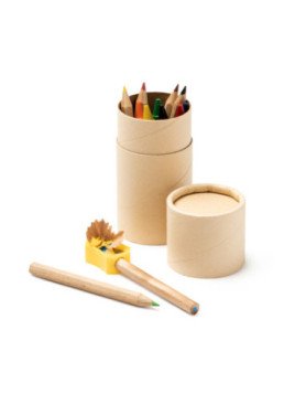 Set de ceras para colorear de 13 piezas. Incluye 6 ceras, 6 lápices de madera y un sacapuntas.