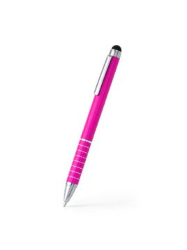 Bolígrafo giratorio de aluminio con puntero táctil en color negro. Tinta azul.