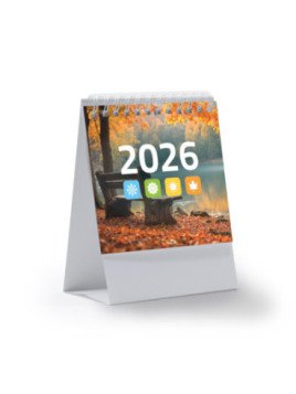 Calendario de sobremesa vertical con anillas. Diseño mes en curso / mes anterior / mes siguiente / Calendario anual. Incluye santoral. Cuerpo de cartón ideal para marcar.