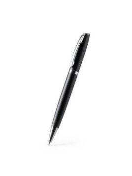 Elegante bolígrafo giratorio con cuerpo de aluminio reciclado y detalles metalizados. Un bolígrafo concienciado con el medioambiente. Carga jumbo de tinta azul.