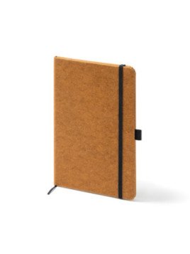 Bloc de notas A5 con tapa rígida elaborada con piel reciclada. Marcapáginas y banda elástica de cierre. Cuenta con 100 hojas a una línea.
