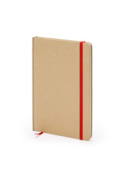 Bloc de notas A5. Tapa rígida de cartón reciclado. Marcapáginas y banda elástica a color. 100 hojas lisas.